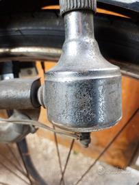 Accessori vintage originali d'epoca come ad esempio: ruote 26" anteriore e posteriore complete per freni a bacchetta, cerchi 26" per freni a bacchetta, freni a bacchetta, parafanghi, terminali bianchi parafango, raggi neri, copricatena, pedali, dinamo, fanali, carter alluminio d'epoca, pompa per motocicletta anni '50/'60, ecc.. Inoltre bici 26" donna vintage con freni a bacchetta completa marca Regina, anche per recupero pezzi di ricambio. Contattare per ulteriori informazioni.