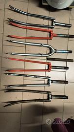 vendo anche 5 cerchioni diversi usati da bicicletta 26 e 28 pollici ancora ottimi non piegati girano bene e 6 forcelle le due rosse da 26 e resto da 28 pollici valide per vari tipi di freni.