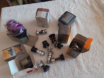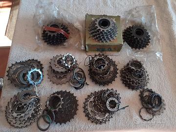 4 portaruote piu' un attacco forcella tutto nuovo,diversi tipi di serie sterzo nuovi o come nuovi Campagnolo-Eleven-Ritchey-Durace-Miche,ghiere e vari distanziali,3 corone Shimano 42 SG nuove,1 corona 42 Durace ,1 corona 39 Shimano ,1 corona 53 Durace,1 corona 54 FSA,viti di fissaggio alle pedivelle,1 pedivella Shimano 105,1 pedivella Campagnolo,2 ruote libere 6 velocita,1 Regina Extra 6 velocita nuova,una 9 velocita Miche nuova per Shimano,una 9 velocita in lega per Shimano,tre 9 velocita Shimano,una 105 Shimano 8 velocita,vendo solo in blocco a 150 euro.