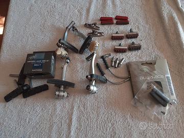 2 cinghietti Balilla Gallo Torino nuovi,2 cinghietti come nuovi,5 cinghietti vari,2 gabbiette anni 70,2 gabbiette plastica, freni ant e post mtb alluminio,4 pattini anni 70,4 pattini Corima come nuovi per ruote carbonio,2 corpi e 2 pattini Durace nuovi,3 pattini Shimano XT mtb nuovi,2 coppie serraggi ruote Mavic nuovi,2 serraggi in lega nuovi,2 serraggi Shimano,1 serraggio ant Mavic nuovo,1 serraggio post in lega,1 serraggio sella Sintesi Verlicchi anodizzato viola nuovo,1 serraggio sella Miche,2 scatole pezze,3 computer e calamite per ricambi,chiavi ruote Mavic nuove,bulloneria ergal,tappi manubrio,plastiche per cavi sotto telaio,faro bici donna nuovo.Solo in blocco a 110 euro.