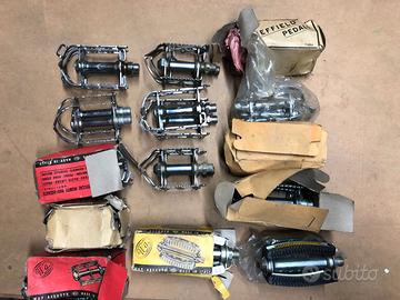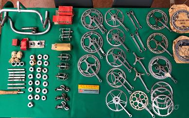 Vendo preferibilmente in blocco stock di ricambi nuovi ed usati per biciclette d'epoca/vintage. Disponibili numerosi ricambi tipo cerchi in alluminio, pinze freni, pedali, guarniture, manubri, selle, catene varie marche, cambi, mozzi, rocchetti, forcelle, ecc. Ricambi nuovi ed usati Campagnolo, Roto, Regina Extra, Caimi, Mondial, Universal, Everest, WA, Omega, 3TTT, Stella, Nisi, Galli, Simplex. Ricambi perfetti per restauri, per partecipazioni gare storiche tipo Eroica. Dispongo anche diversi telai e bici vintage complete, altre foto disponibili a richiesta. Valuto permute sensate o proposte di vendita eque, valore dei ricambi presenti oltre 2000€. Prezzo del blocco molto conveniente.