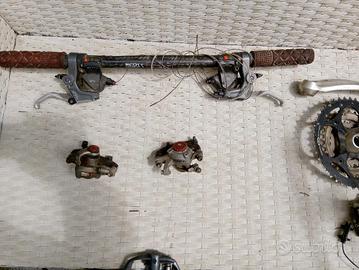 corona e pedali XT 35 euro pipa bianchi (nuova) 10 euro manubrio termoplastica Scott (120grammi ) con comandi XTR 35europinze Avid BB5 20 euro computer Polar completo ( pari al nuovo ) 35 euro.Possibile sconto per acqui sto in blocco. Tutto perfettamente funzionante. Solo da pulire dopo anni di garage.