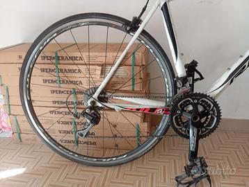 Vendo Ridley Fenix. Telaio in alu. Cambio Shimano 105. Guarnitura FSA con corona 50-40-30 ottima per allenamento agile. Pedivelle FSA da 165 mm. Gruppo pignoni 11-28 a 10 velocità. Sellino "Forza 4". Ruote "Fulcrum 7" copertoni "Continental". Taglia M.