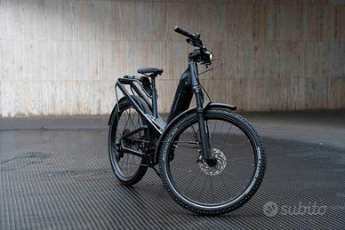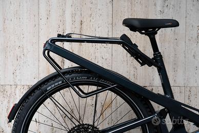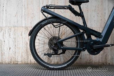 SUPER BONUS MOEZ di 1.500 euro! Bike biammortizzata da GranTurismo nuova in pronta consegna Listino: 7.047 euro Offerta Moez: 5.500 euro MISURA DEL TELAIO: 49 (statura da 165 a 180 cm) MOTORE: Bosch Performance Line CX 85 Nm BATTERIA: Bosch Powertube da 625 Wh ELETTRONICA: Bosch Smart System DISPLAY: Bosch Kiox 500 TRASMISSIONE: Shimano Deore XT 11v OPTIONAL: Kit Comfort, Kit GX, Kit abbassamento sella La Homage è la eBike da GranTurismo ideale per chi desidera fare lunghe escursioni o affrontare percorsi in salita. A prima vista, affascina per il suo design originale: la batteria è completamente integrata e il tubo di sterzo e quello inferiore formano una sola unità, fino a congiungersi al portapacchi multiuso. Questa eBike è dotata di Control Technology con sospensione totale e telaio ad accesso facilitato, in modo da assicurare il massimo livello di comfort e di sicurezza in sella. La Control Technology - con forcella ammortizzata e ammortizzatore posteriore - è sinonimo di sicurezza e guida dinamica: la sospensione totale restituisce una guida sportiva e un’eccellente trazione in ogni situazione e su qualsiasi tipo di terreno. Questo esemplare è inoltre dotato di Kit Comfort (manubrio reclinato e sella più ampia) e Kit abbassamento sella: tramite un comodo comando remoto posizionato sul manubrio è possibile agire sul reggisella telescopico per abbassare la sella e rendere l'accesso ancora più facilitato. Tra gli optional installati su questo esemplare, non manca il Kit GX, ovvero gli pneumatici tassellati Schwalbe Johnny Watts, per affrontare in sicurezza qualsiasi tipo di terreno. Il cuore della eBike è il motore Bosch Performance Line CX da 85 Nm, abbinato ad una capiente batteria da ben 625 Wh, per un'autonomia davvero estesa. La gestione elettronica delle modalità di assistenza e delle numerose funzioni passa attraverso il grande display a colori Kiox 500 e il LED remote, governati dallo Smart System, che rende la Homage una eBike completamente connessa.