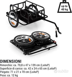 Rimorchio Bici 42x65 cm 40kg carico acciaio nero