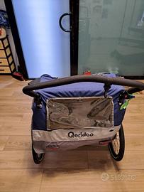 Buongiorno Propongo in vendita carrello bici che accoglie fino a 2 bambini di peso massimo 22kg ciascuno. Modello Sportex2 Marca Qeridoo. Buone condizioni geneali, ha un difetto da sistemare alla ruota anteriore. Acquistato nuovo al prezzo di 269€, vendo per bambini ormai troppo cresciuti.