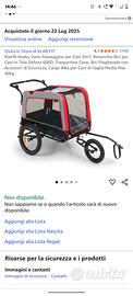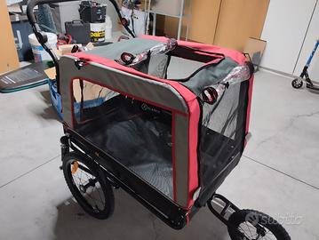 usato una sola volta, molto stabile, come nuovo. con la terza ruota si trasforma in un passeggino. L' ho usato per la mia cagnolina di 17 kg ma ci stava alla grande. comprato a luglio 2025 e pagato €140