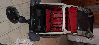 vendo rimorchio bici per trasporto bambini a due posti. come nuovo, trasformabile in passeggino. zanzariera, parapioggia incorporato e pratica tasca posteriore. marca Bellelli, richiudibile in un minuto.