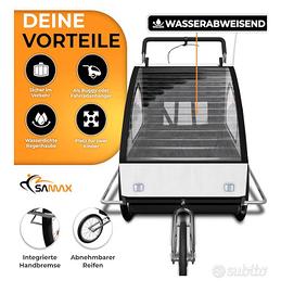 Il rimorchio per bicicletta "SAMAX" per bambini è la soluzione ideale per portare i vostri bambini durante lunghe gite in bicicletta. Grazie all'elevato comfort e sicurezza, nulla ostacola più un'avventura in bicicletta senza preoccupazioni, in cui genitori e bambini possono concentrarsi completamente sul divertimento della famiglia.