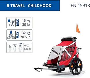 Vendo CARRELLO bici Bellelli B-Travel, ideale per trasportare in sicurezza fino a 2 bambini durante le uscite in bicicletta. IN VENDITA SOLO IL CARRELLO ✅ Omologato per il trasporto di bambini fino a 45 kg ✅ Dotato di cinture di sicurezza a 5 punti ✅ Sedile ergonomico e traspirante ✅ Telaio in acciaio ultraleggero ✅ Copertura impermeabile con zanzariera ✅ Ruote da 20’’ facilmente smontabili ✅ Si richiude in pochi secondi per un trasporto comodo ✅ Completo di bandierina di sicurezza Condizioni: usato in ottime condizioni. Nessun difetto strutturale. Pronto all’uso! Ritiro a mano in zona Caltanissetta. Non spedisco. Contattami per qualsiasi informazione o per venire a vederlo dal vivo