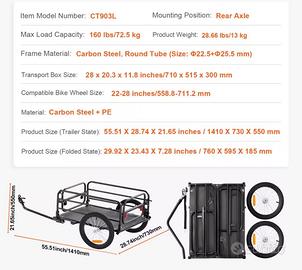 Questo rimorchio da carico per bicicletta supporta fino a 160 libbre di peso.(circa 72kg)