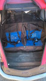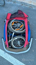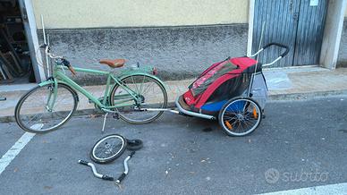 Vendo rimorchio per bici Croozer 535 dotato di tutto gli accessori capotte impermeabili e zanzariera, braccio per agganciarlo alla bicicletta, ruota grande per passeggiata sportiva e ruota piccola passeggino dotato di freno di stazionamento. All’interno lo spazio ampio. Puo' trasportare due bambini in totale tranquillità. Nel retro dispone di un ampio bagagliaio per riporre tutto il necessario per i bambini. Il carrello ha una bandierina di segnalazione e catarifrangenti anteriori e posteriori per viaggiare in strada in sicurezza, Usato poco, ottime condizioni. La cinghia di sicurezza dell'attacco alla bici è rovinata ma è facilmente sostituibile o riparabile. Prezzo trattabile Ritiro preferibilmente a mano.