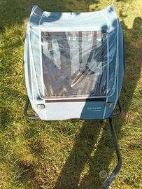 Rimorchio Bike original per trasporto 1 o 2 bambini max 40 kg colore carta da zucchero. Attacco bici escluso (gancio rimorchio Bike original 15 mm in vendita da Decathlon anche online). Acquistato da Decathlon nel 2024 e destinato a trasportare la spesa settimanale, l'ho utilizzato poche volte perchè non era adeguato alla mia necessità; unico difetto la capottina dal colore leggermente sbiadito in corrispondenza delle parti sovrapposte (non a vista).