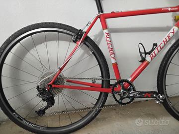 Vendo Ritchey Swisscross 2017, taglia xs, gruppo misto Shimano 105, GRX, ruote Dt swiss 411 tubeless, pedivelle FSA SLK monocorona Aribike 38T, gomme nuove Kenda, peso 8,5 kg, trasmissione 11 velocità 11-42. Manutenzione sempre eseguita regolarmente.