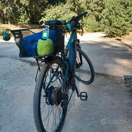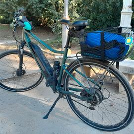bici da trekking e da città con pedalata assistita - acquistata nel dicembre 2022 - tagliandata presso laboratori decathlon - con portapacchi e cestino posteriore decathlon - garanzia telaio a vita - batteria ancora ottima durata di circa 90 km in modalità eco - copertoni e pasticche freni appena sostituiti -