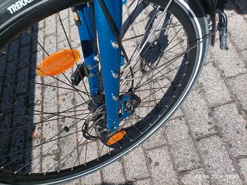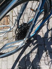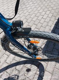 Vendo come da titolo , bici del gennaio 2022 ideata per il cicloturista ma usata per portare in giro in piccoli giri il cane , monta freni a disco idr. portapacchi con portata di 40 kg fanali molti punti di attacco per borracce etc cambio monocororona e cassetta 11 velocità da 11 a 46 misura M adatta a persone con altezza da 166 cm a 177, 180 cm