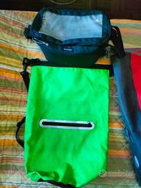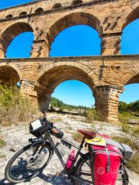 Cedo per inutilizzo bici da cicloturismo/touring Decathlon in ottime condizioni. La bicicletta viene ceduta compresa di tutti gli accessori originali (meno un tappino del bar end in plastica perso in viaggio). In aggiunta cedo anche: Borsa da manubrio 6 lt Decathlon; Sacca impermeabile 20 lt; Cavalletto kickstand 500; Specchietto e borsa da telaio; Supporto da manubrio per il telefono; Camera d'aria+raggi e pezzi di ricambio; 4 portaborracce e il completo antipioggia. Possibilità di visionare e provare la bici prima dell'acquisto.