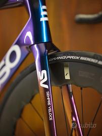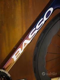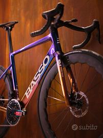 Road bike Basso SV - sempre veloce Colore Viola Galaxy Telaio e forcella in carbonio Gruppo SRAM Force AXS Ruote Fulcrum Sharq 57' Pneumatici Continental Reggisella dedicato, in carbonio Pipa/manubrio aero in carbonio Disponibile in negozio in taglia 53 Prezzo di listino: 9.249 euro Prezzo promo: 7.790 euro