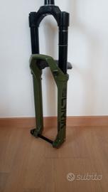 Rock Shox Lyrik Ultimate Charger 3, 160mm, per ruota 29". Colore verde militare, canotto conico, rinforzato per uso specifico E-bike, lunghezza 18cm. Revisionata da poco da D.B.Bike Salò e non più utilizzata. Offset 44mm, asse boost 15x110, buttercups per smorzamento ottimale delle vibrazioni. Condizioni ottime, steli perfetti e immacolati, minimi segni solo estetici su fodero destro, visibili in foto.