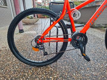 Vendo bellissima Mountain bike da 26 pollici rockrider 340. La bicicletta si presenta in condizioni perfette , con qualche segno di usura come da foto, che non compromettono l utilizzo Cambio completo shimano 3×7 perfettamente funzionante Forcella anteriore ammortizzata e regolabile nel precarico. Telaio leggero in alluminio. Si vende inoltre con una pratica borsetta sottosella, catena con doppia chiave copri sella in memory foam e doppia luce a led No affaristi o perditempo, solo ritiro a mano