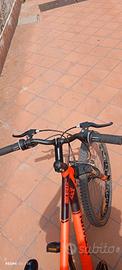 MTB btwin Rockrider 500, ruote da 24 pollici per bambini da 9 a 12 anni, con cambio a 21 rapporti (7x3). Cambiate da poco le pasticche dei freni. Insieme fornisco anche un campanello rosso, un porta borraccia, un set di chiavini e due luci una anteriore e una posteriore. Un po' consumata solo la ruota posteriore.