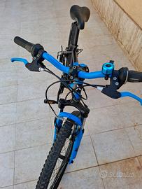 Rockrider 500 ruote 24" colore nero e azzurro per bambini 9-12 anni altezza 1,35- 1,55 cambio 18 velocità 3 anteriore 6 posteriore 75 /1 tutta revisionata essendo usata la ruota posteriore non é perfetta ma funziona regolarmente ha copertone nuovo per il resto non necessita di nulla prezzo 100,00. ( 20 )