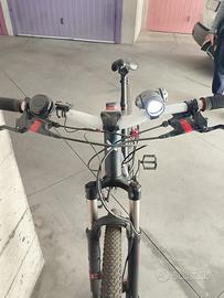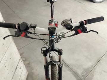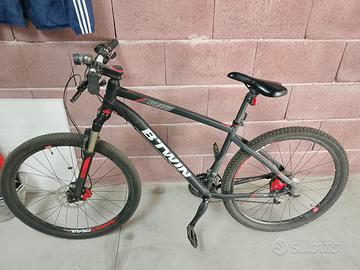 ROCKRIDER 540 27,5″ (L) decathlon-btwin mtb rockrider-540 Forcella idraulica 100 mm, bloccabile. Sella ergonomica. Attacco manubrio alzabile. 27 velocità SHIMANO Altus. Copertoni leggeri con mescola morbida dalla forte motricità. Freni a disco idraulici. Pedali flat larghi con molto grip.