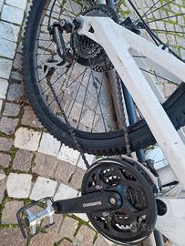 Guarnitura Shimano nuova ( 3 mesi ) , gomme nuove, cambio shimano Acera 3x8 , freni disco Tektro 160mm davanti e dietro , ammortizzatore anteriore Sr Suntour , ammortizzatore posteriore a molla originale , ruote da 26" .