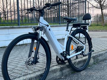 Batteria: Estraibile da 356 Wh, integrata nel telaio, che offre un'autonomia fino a 70 km in modalità eco. La ricarica completa richiede circa 4,5 ore. Purtroppo il caricatore l'ho perso durante un trasloco . Batteria gia carica .ideiale per porttare i bambini a scuola