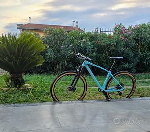 Vendo Rockrider Race 740 in carbonio. Il telaio della bici pesa 1000 grammi. Il cambio è il deragliatore sono Sram Gx Eagle. La forcella, come nel mondo dell'xc hardtail, ha un escursione di 100mm ed è una Rockshox Recon Gold con steli da 32 mm. È presente anche un blocco sul manubrio Combolock con 2 posizioni della forcella:aperto/chiuso. Le ruote sono da 29 pollici e sono delle Sun Ringle Duroc. L'impianto frenante è Sram Level T è infine le gomme sono all'anteriore Vittoria Barzo e al posteriore Vittoria Mezcal,compresi pedali spd. Il peso della bici si aggira su 11 kg.