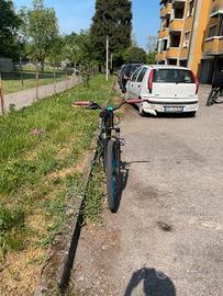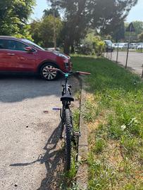 rockrider st 100 trasformata in wheelie bike modifiche fatte: -tolto freno davanti - riverniciata nera - manubrio bucklos - manopole rosa/nere - attacco manubrio wake - sella mafia bike - pedali cromati meroca - copri raggi combo blu/rosa usato alune volte,per altre informazioni contattami in privato