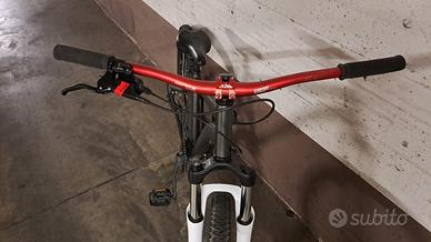 Trasmissione monocorona 9v, manubrio Wake e attacco oversize 45mm, ruote 27,5", freno a disco idraulico Tektro.