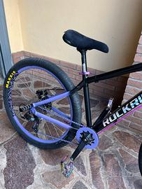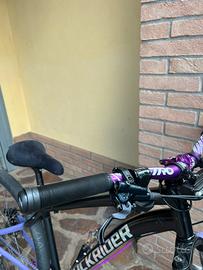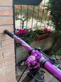vendo rockridee st 120 con le seguenti modifiche: -mozzo tanke holo 120 click(non ce in foto ma è montato) -forcelle mv-tek(come il mozzo,non ci sono in foto ma sono montate) -manubrio viola astro 720mm -attacco maubrio viola lunjee -tappo attacco manubrio viola lunjee -pedali tanke holo -freno shimano slx br-m7100 -disco 180mm snail -reggisella reclinabile lunjee -sella mafiabike -cerchi viola verniciati viola dal carrozziere e telaio nero sempre verniciato dal carrozziere bici in ottime condizioni,vendo causa cambio taglia bici.