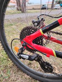 Vendo splendida Mountain Bike da bambino/ragazzo Rockrider ST 900 con ruote da 24 pollici. È il modello top di gamma di Decathlon per questa misura, progettato per bambini dai 9 ai 12 anni (indicativamente tra 135 e 150 cm di altezza). La bici è in ottime condizioni, come visibile dalle foto, pronta all'uso. Freni a Disco Idraulici: La caratteristica migliore. Sono morbidissimi da azionare anche per le mani piccole di un bambino, ma offrono una frenata potente e sicura, molto superiore ai freni meccanici tradizionali. Trasmissione Monocorona Shimano: Semplicissima da usare. C'è solo un comando sul manubrio per cambiare le marce. Monta un deragliatore Shimano Altus affidabile. Leggerezza: Telaio in alluminio specifico per bambini, facile da manovrare. Forcella Ammortizzata Suntour: Vera forcella regolabile per assorbire gli urti e non solo per estetica.