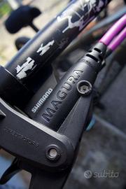 Vendo bellissima Rockrider ST100 (Wheelie) del 2022 con molte modifiche. La bici è stata presa a giugno del 2022 e nonostante l'utilizzo e quasi come nuova. Presenta queste modifiche: -Freno a pattino Magura HS11 Idraulico (appena spurgato) -Forcelle Mozo Performance (Manutenzione appena effetuata) 100mm di escursione -Gomme Maxxis Hookworm -Manubrio Wake 780mm -Attacco Manubrio Shikra -Manopole Odi -Pedali Cromati Meroca -Attacco Tubo sella Tanke -Tubo sella riverniciato -Sella Mafia Bike Funsea Per manutenzione: -Guarnitura Corone Shimano Tourney -Catena Shimano Originale -Fili Cambi Sostituiti -Guida cavi sotto telaio sostituito -Deragliatore Corone Originale revisionato e perfettamente funzionante Continuo delle modifiche: -Selettori Shimano Tourney -Cambio Shimano Tourney La bici è perfetta, è un 3x7 21 marce in totale Ruote da 27,5 e Telaio taglia M Prezzo trattabile, per altre info instagram: lucadonvii78. (Insieme alla bici ovviamente aggiungo scatola freno magura con kit e manuale e su richiesta i vecchi componenti) In dotazione Gomme tassellate nuove x enduro Byte Plose 27,5 x 2.10