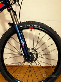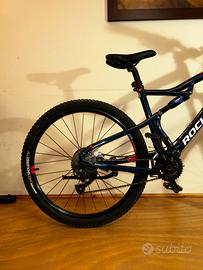 Telaio in acciaio misura L Biammortizzazione 120mm rockrider bloccabile Forcella a durezza regolabile Freni a disco idraulici TEK-PRO Ruote 27.5x21 duble-rim rockrider Pneumatici tubeless”all-conditions light” con presa shrader Cambio SHIMANO ACERA/braccio cambio SHIMANO ALTUS a doppia corona/con pignone a 9 rapporti Manubrio escursione 80mm Sellino CONFORT PLUS con certificazione “PRO ACTIVE” ________ La bici ha percorso meno di 400km Sempre stata eseguita la manutenzione periodica e l’oliamento/ingrassamento di tutti i componenti. MAI subito cadute di entità grave. Bici in condizione generale rasente al nuovo. Prezzo di acquisto originario 729’99€ ——————— disponibile per domande sensate:)