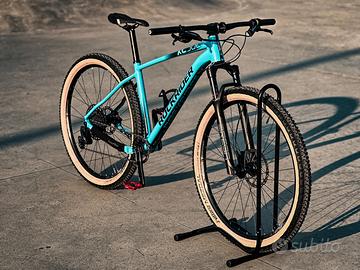 trasmissione SRAM GX Eagle 1x12 (cassetta 11-50T, corona 34T) guarnitura Truvatyv Stylo, movimento SRAM dub, forcella ROCKSHOX REBA RL da 100 mm bloccabile sul manubrio, freni a disco 180/160 SRAM LEVEL T, peso ~11,5kg.
