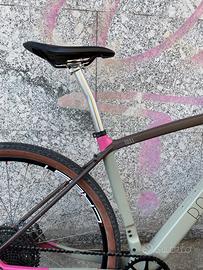 Rodeo Lab Trail Donkey 3.1 Taglia: 54 Tipologia: USATO gravel in carbonio Anno: 2025, unico proprietario Km percorsi: 1.500 km Peso: 9,8 kg Motivo della vendita: bici ambassador / test Gruppo Sram Apex XPLR 1x12 Velocità Comando SX Sram Apex (NUOVO) Comando DX Sram Apex Guarnitura Bombtrack 40 denti (NUOVA) Cassetta 11-51 Catena Sram Eagle Dischi 160 + 160 mm (NUOVI) Ruote Stan's No Tubes Crest con mozzi Sunringlè (NUOVE) Copertoni Pirelli Cinturato Adventure 700x50 Tubeless Sella Fizik Reggisella Thomson Silver Attacco manubrio alluminio Nero Manubrio Salsa Cowchipper tg. 44 Nastro manubrio Ritchey Nero (NUOVO) Revisionata presso l’officina Ciclocentrico con pulizia e lubrificazione: - mozzi - serie sterzo - movimento centrale IMPORTANTE: . Per ulteriori informazioni non esitare a contattarci. . Non si accettano permute o scambi. . La bici è esposta presso Ciclocentrico - Rivoli (TO) . Spedizione in tutta Italia con corriere espresso: + 40 euro . Disponibili pagamenti bonifico, paypal, contanti, finanziamenti fino a 60 rate