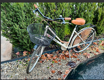 SPETTACOLARE bicicletta CRUISER da città in stile VINTAGE tinta crema, firmata RONDINE. Cestino anteriore e portapacchi posteriore, comodissima sella e manopole pelle marrone. CONDIZIONI: nuova mai adoperata