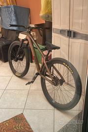 La bici è una Rose The Bruce 1, stata acquistata nel 2023. Presenta alcuni segni di usura sul manubrio, attacco manubrio e carro posteriore (segni praticamente non visibili). Bici completamente funzionante con spurgo fatto da poco, pastiglie semi nuove, revisione alla forcella fatta e cambio copertoni/catena circa 200km fa.