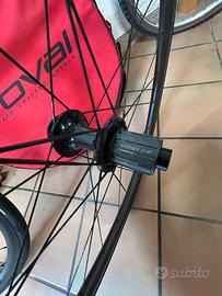 Vendo ruote alpinist da 33 di profilo peso super leggero 1.284g la coppia, con copertoni pirelli pzero circa al 80%. Non presentano nessun segno o botta, smontate dopo 1 anno per passaggio a profilo piu alto, pensavo di usarle come secondo paio ma non le ho mai usate. Compreso anche sacche originali roval. Non spedisco, consegna a mano zona verona e provincia no perditempo
