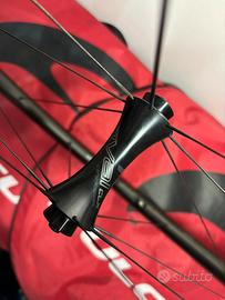 Vendo come da titolo ruote per bici da corsa Roval Rapide CLX con profilo da 32 mm, versione copertoncino (camera d’aria o anche tubeless) per freni rim. Corpetto Shimano. Ruote che si presentano in ottime condizioni, presenti solo normalissimi piccoli segni dovuti all’uso, hanno percorso circa 5000 km in totale, piste frenanti perfette. Grazie al loro peso molto basso (montate come ora con copertoni da 28 e camere d’aria standard qualche grammo sopra i 2000!) e ai cuscinetti Ceramicspeed sono superlative in salita ma se la cavano molto bene anche in pianura, sono molto divertenti da utilizzare. A dicembre 2025 è stata eseguita la manutenzione, copertoni nuovi Specialized Turbo Pro da 28 mm (dato il canale largo dei cerchi da montati la misura reale è 30) e pulizia e applicazione di grasso nuovo (Ceramicspeed UFO All Round) ai cuscinetti di entrambe le ruote, da allora sono stati percorsi solo 250 km.