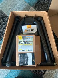 - Adattatore per perno passante posteriore da 142x12mm e 148x12mm e supporto livellatore per ruota anteriore.