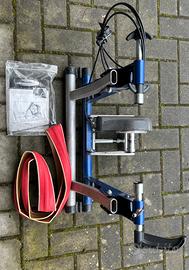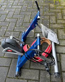Vendo rullo a resistenza magnetica + copertoncino per uso rullo. A parte posso fornire adattatore per perno passante (ultima foto). Fornibile a parte anche sensore di velocità per connetterlo con le app tipo Zwift e simili.