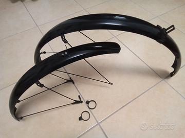 Ruota anteriore MTB 26" v-brake e disco: mozzo DT SWISS 240s, centerlock, 5x100 mm, sgancio rapido, 32 fori, cerchio 26" MAVIC XC 717 v-brake e disco 32 fori, 17-559, pista frenante con usura minima, raggi DT SWISS REVOLUTION 2.0-1.5 Peso 718 grammi, condizioni OTTIME Parafanghi SKS Per 26", larghezza 60 mm, condizioni ottime.