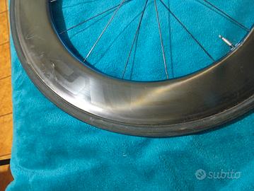 vendo ruota anteriore da crono da 90 mm modello enwe Smart completa di tubolari Vittoria grafene da 25 mm in più in ottime condizioni sono prive di degli adesivi per motivi estetici