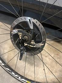 Ruota in ottime condizioni, con disco freno Shimano Dura Ace e copertone Schwalbe Marathon Plus 700x32. Ruota dritta e scorrevole