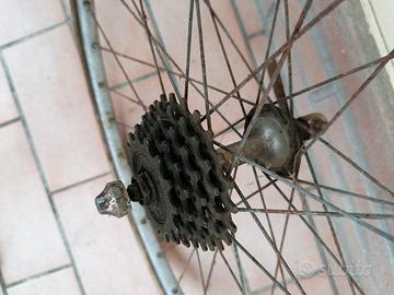 Vendo ruota posteriore bici epoca marchiata Michelin. Non spedisco la ruota intera ma posso spedire il mozzo con il rocchetto con tuttosubito.