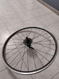 ruota Btwin sport 700 doppia parete con 7 rapporti cassetta microshift 12/28 con cambio shimano tourney e relativo manettino.