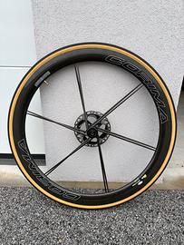 Ruota in carbonio corima anteriore Nuova usata 3 volte con tubolare e disco freno cuscinetti ceramici